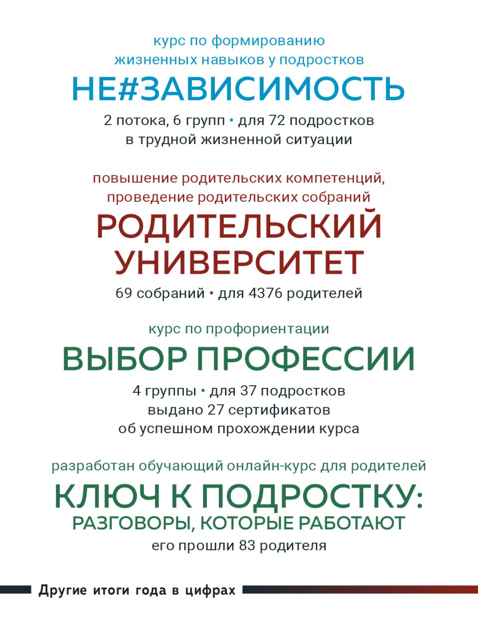 Также наши специалисты приняли участие в проведении обучающих программ для Федерального Подросткового Центра. В качестве спикеров участвовали в крупных профильных конференциях и форумах в других регионах России: